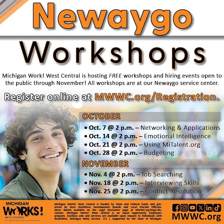 © Copyright Michigan Works! West Central. All rights reserved. Michigan Works! West Central is an equal opportunity employer/program. Auxiliary aids and services are available upon request to individuals with disabilities. Michigan Relay Service: 711 | Supported by the State of Michigan.