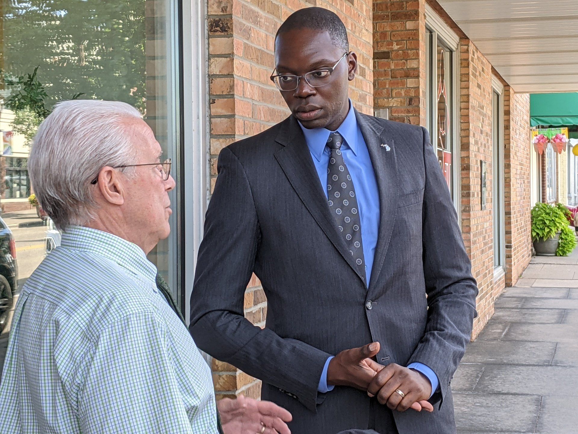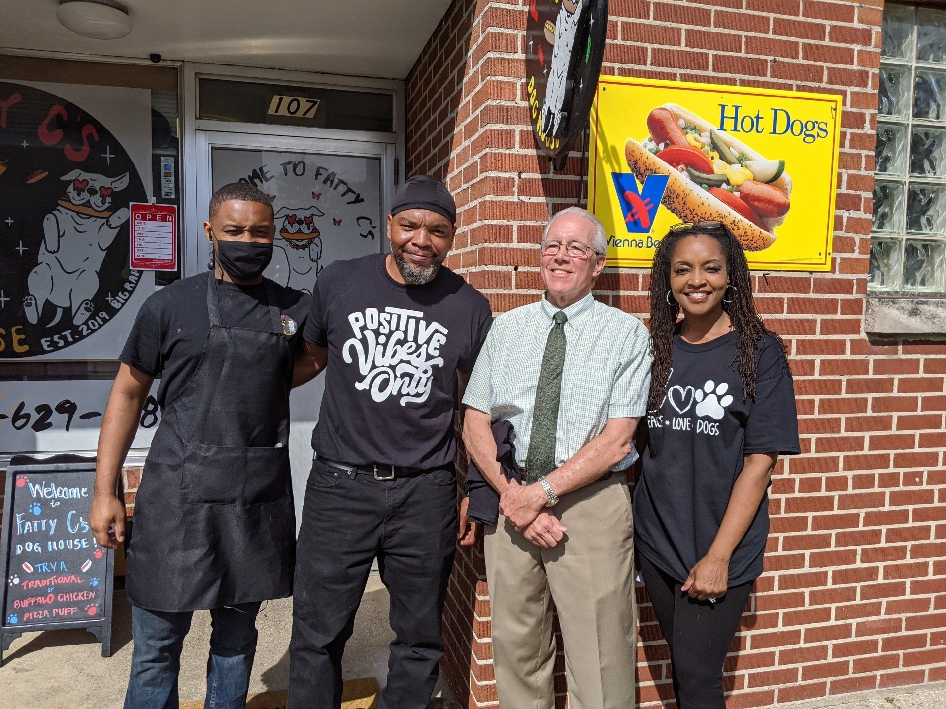 Michigan's Lieutenant Governor Garlin Gilchrist made a stop in Downtown Big Rapids on Monday, Aug. 16, to talk with some local small-business owners, including Bernard and Kasey Agee at Fatty C's Dog House, and Brian and Carlleen Rose at The Old Pioneer Store and Emporium.