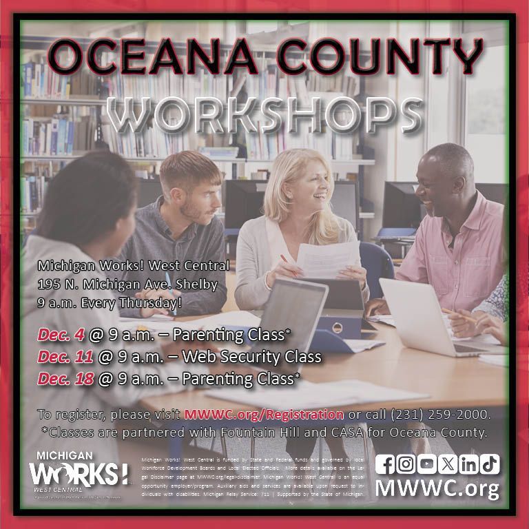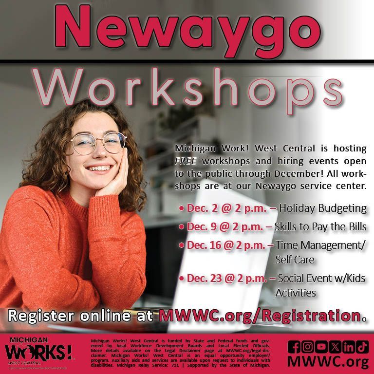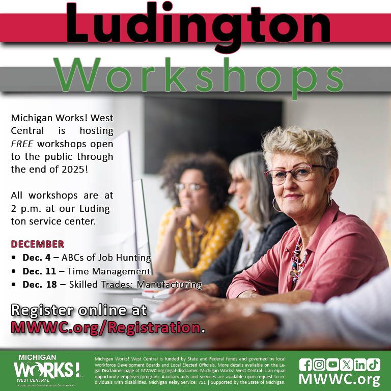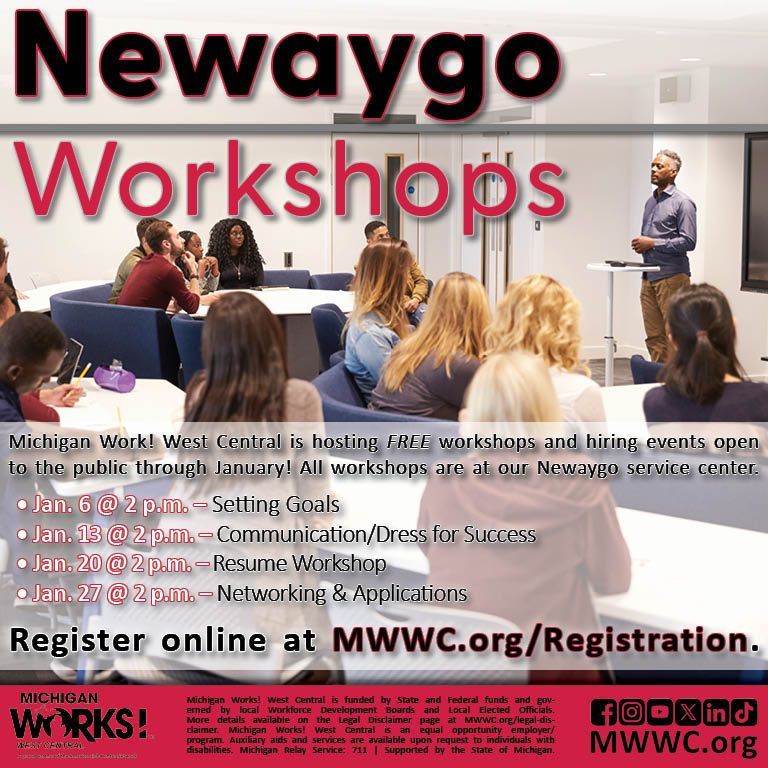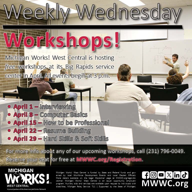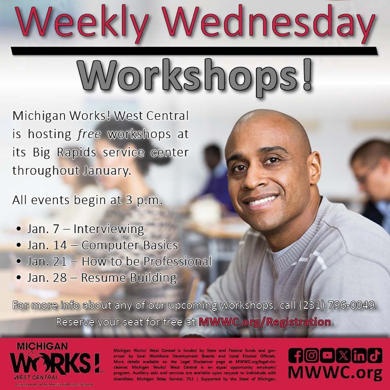 © Copyright Michigan Works! West Central. All rights reserved. Michigan Works! West Central is an equal opportunity employer/program. Auxiliary aids and services are available upon request to individuals with disabilities. Michigan Relay Service: 711 | Supported by the State of Michigan.
